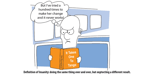 Too often people don’t think or act ‘sanely’ when it comes to their marriage problems. Picture this common scenario: a wife is frustrated that her husband doesn’t help more around the house. She nags and badgers him but it doesn’t inspire him to step up and be more helpful. Her reaction? She gets more persistent in her nagging, sharper in her criticism. Not only does it not have the desired effect, it drives her husband even further from her.